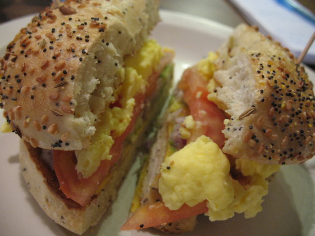 Affordable, healthy options offered by the restaurant include the $5 breakfast bagel sandwich, which I like to special order with tomato, onions, and avocado instead of meat. The café also offers fresh oatmeal and raisins for only $4.