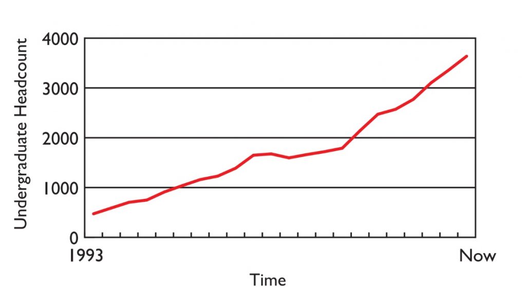 Since the University of Washington Tacoma was founded in 1990, enrollment has steadily risen every year. When the campus began admitting freshmen in 2006, enrollment began climbing at a higher increment, with this fall including the largest freshmen class in the university’s history.