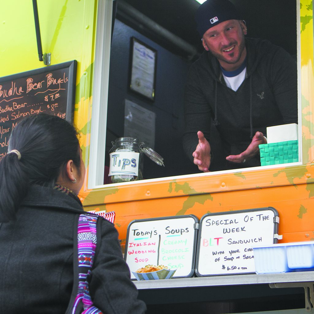 Budha Bear Bagels & Cafe is a mobile eatery now serving the University of Washington, Tacoma. It is owned by husband and wife, David and Kat Charvis.