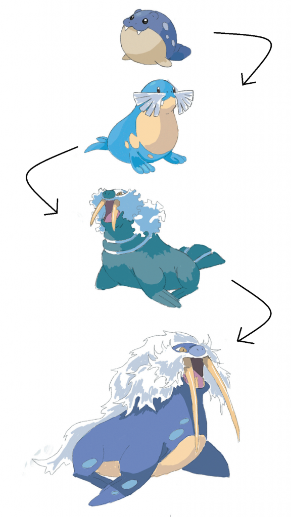 As caterpie, and the many other Pokémon that evolve from a caterpillar to a cocoon and finally to a butterfly-like creature would suggest, perhaps Pokémon ‘evolution’ is simply a misnomer. It is more akin to some sort of metamorphosis, granted it’s not terribly realistic. After all, no creature can just create biomass to grow so much in a matter of seconds. Take for example wailmer, a whale-like creature, it evolves into wailord, a bigger whale-like creature, in a matter of 30 seconds. In so doing it grows from an average weight of 286.6 pounds to a huge 877.4 pounds on average. Again, it’s a rather silly proposition.