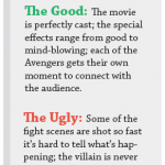 The movie opens with a bang. There is no need for the Avengers to assemble, as they’re already together, fighting goons near a nefarious enemy base. The fight is intense, but there are so many people and the camera moves so quickly that it’s hard at times to figure out what’s going on. This problem pops up in some other fight scenes throughout the movie – you’ll see a second of Black Widow punching, a glimpse of Captain America throwing his shield, but it’s on to the next person before you know it.