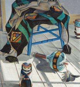TAM is the only museum on the West Coast that showcases Georgia O’Keeffe within the context of her contemporaries from the 1920s to the 1950s. O’Keeffe’s contemporaries are painters who moved to New Mexico and worked at the same time that O’Keeffe was living there. These contemporaries include modernists Stuart Davis, Marsden Hartley, and artists from each of major art centers in New Mexico, like Gustave Baumann, Catherine Critcher, Eliseo Rodriguez, and more. The Eloquent Objects exhibit takes a look at the American Southwest through still-life paintings during a time when many of these contemporaries were attempting to refine individual versions of modern art.
