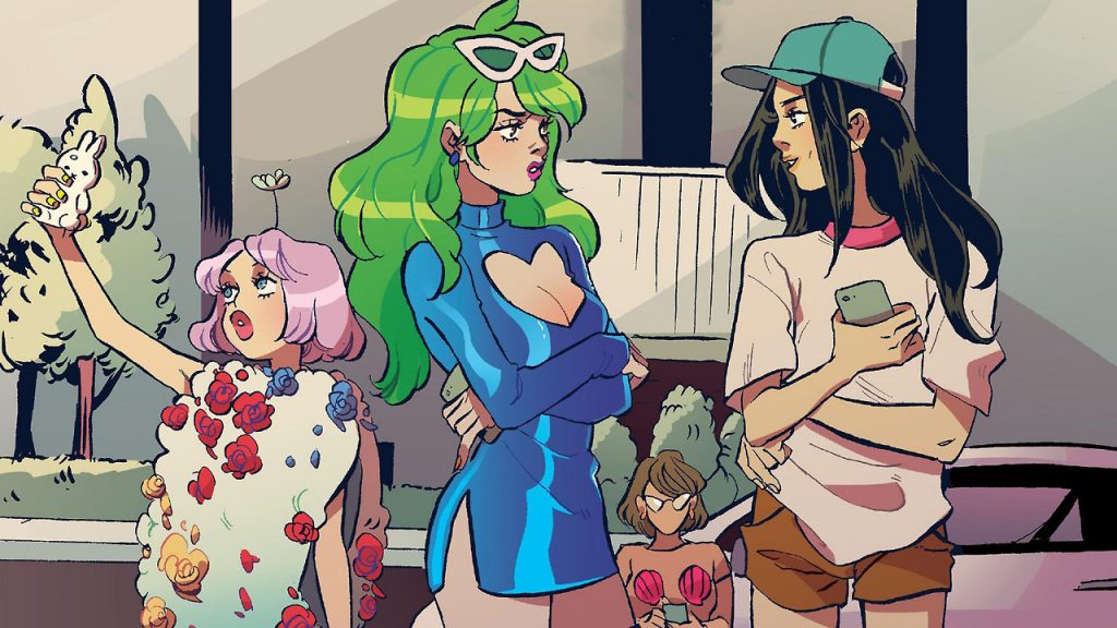 This comic centers around Lottie Person, a white-passing bisexual woman, while she and her circle of friends are fashion influencers. This comic, however, has more to it than what is shown on its valley girl surface. When Person gains a new friend, Caroline, who is much more than she seems, things start to take a turn. As her new allergy medications seem to be taking a toll on her life and sense of reality, this story becomes a tale of immortality, murder, blood, snot and tears.