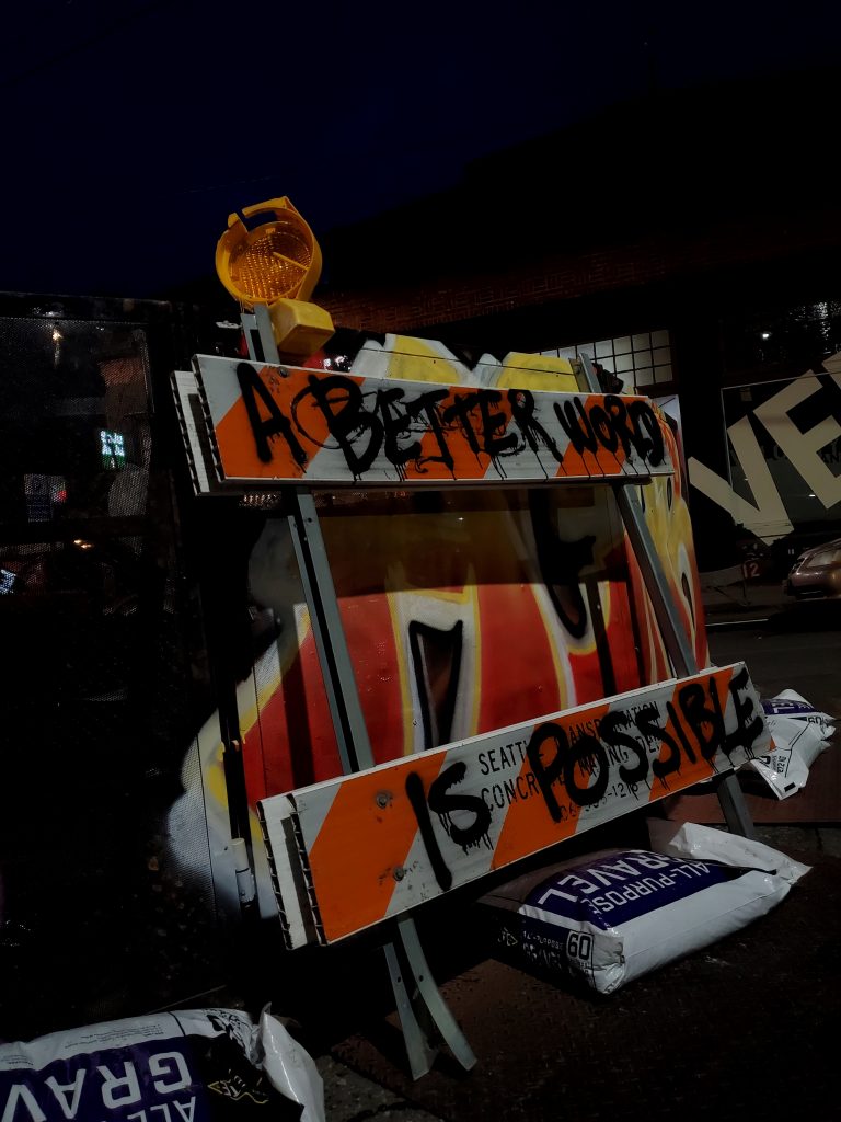 Change starts in the soil, in the roots, in the community. Never will change be tossed down from those in ivory towers, it will not rain down on us and provide salvation. Nor do we need it to, we create it for ourselves. The community informs the change that we demand. And that is exactly what is and has been happening daily in the streets of Seattle.