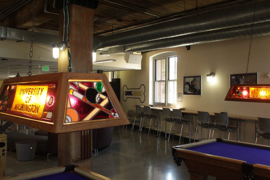 Secondly, we have to talk about the Dawg House! The energetically named student space is located on the eastern half of the Mattress Factory, right up the street from the various restaurants on Pacific Ave., and features plenty of seating, space, and even entertainment such as a music center, pool, ping pong tables, and video games. Currently, it has an occupancy limit of 27 people due to safety regulations, but that just means it’s first-come first-serve to enjoy the socialization and entertainment.