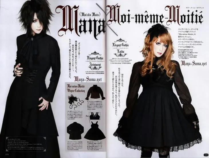 Mana-Sama has always been one of my biggest goth idols. I believe him to be one of my first introductions to goth. I found it absolutely amazing how he could polish the already beautiful Victorian goth into what I can only describe as my childhood dream: A princess with a haunted, porcelain doll-like appearance. I wanted to be him, and even though I no longer yearn to be a gothic lolita, I would love to please my inner child someday and buy a few dresses from the Moi-même-Moitié store.
