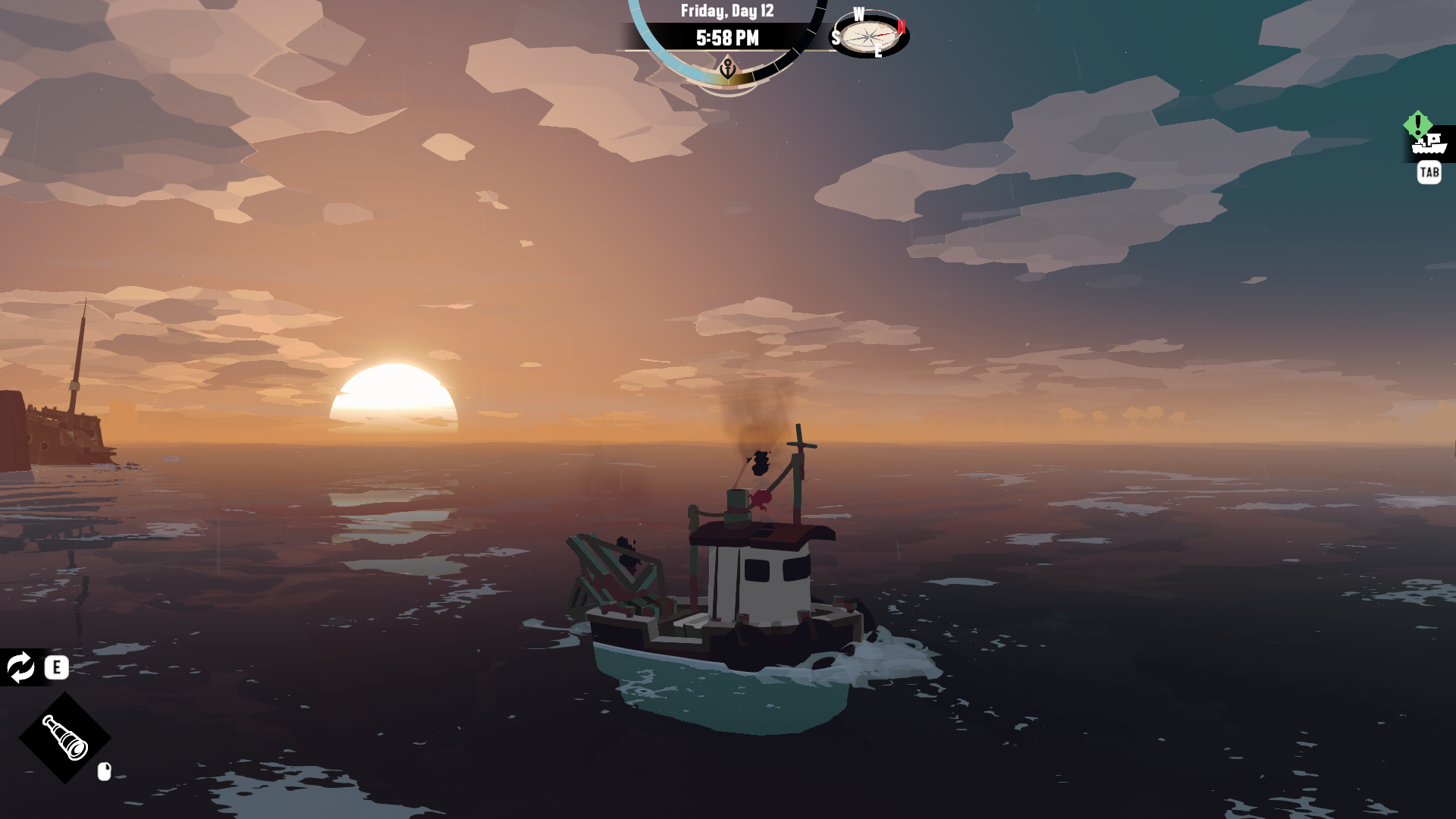 “Dredge” has you thrown into the position of an unnamed fisherman, indebted to a small town after crashing your fishing vessel into their port. You pay off your debt quickly by taking up a job as the local fish supply for this town, and start to make a pretty comfortable and relaxing living.
