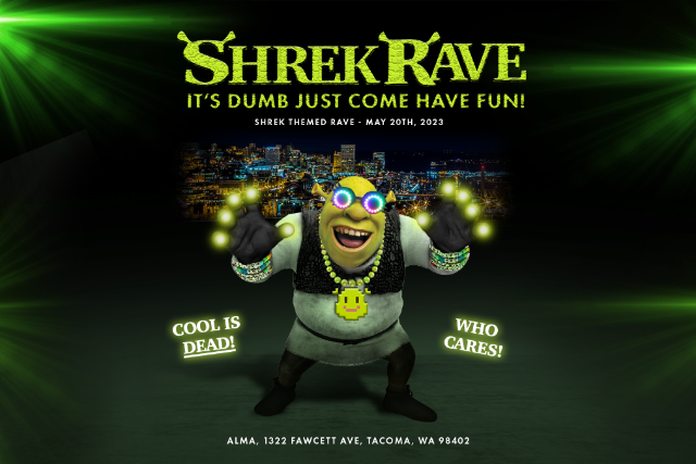Spring has finally sprung in Tacoma. It’s the perfect time to emerge from your swamp, invite your friends from far far away and head out to the Shrek Rave. This event, coming to ALMA in Downtown Tacoma on May 20, isn’t your typical rave; it’s a dance party celebrating all things Shrek.