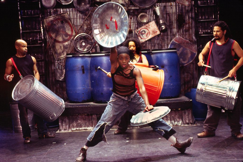 A. Absolutely. I do agree. I think that drumming and singing are in tandem. Specifically, body percussion is something really intertwined in our show. Hitting our knees, clapping or tap dancing. I think what’s cool about our show is that we don’t use any real musical instruments. We play on garbage cans and broom sticks and cleaning supplies. The idea that you can play music on anything around you is a very universal concept. It does harken back to something ancient. We aren’t building things; we’re using our environment and playing with it.