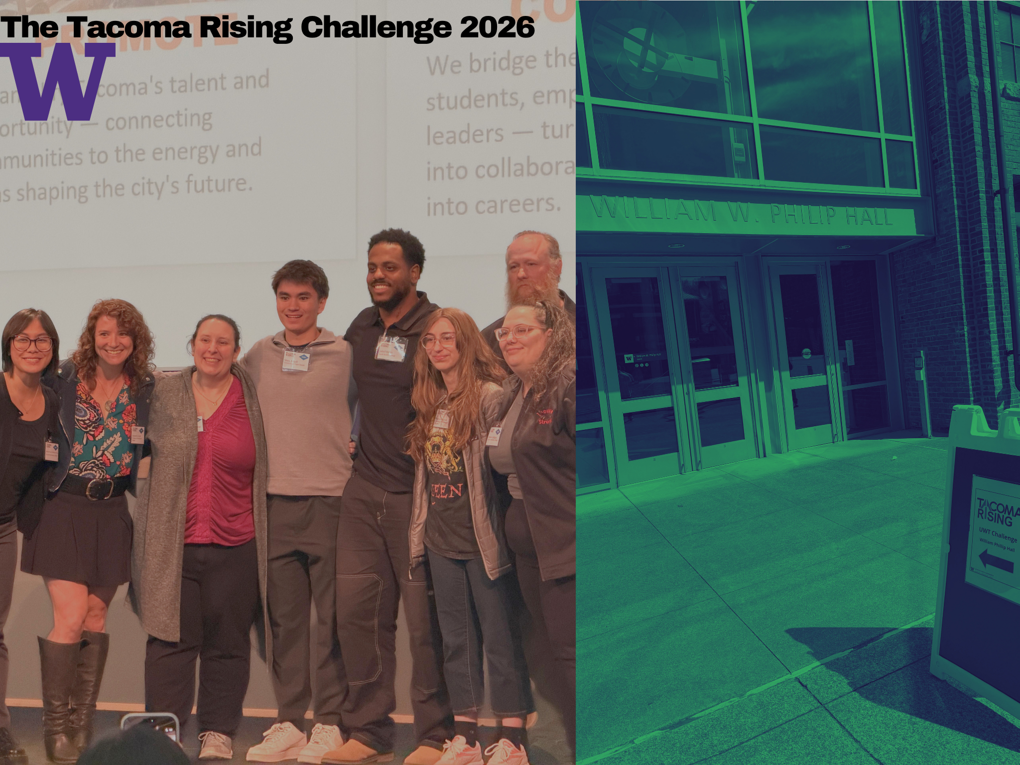 The Tacoma Rising Challenge returned to UW Tacoma at William Phillip Hall (WPH) on April 24, bringing students, business mentors and community leaders to campus for a daylong competition focused on Pacific Avenue, the corridor that connects the university to downtown Tacoma. The event asked student teams to develop and present proposals for the corridor after several hours of structured work with mentors, according to the event listing and Tacoma Rising descriptions.